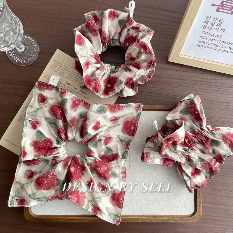 1 Stück Neuer Stil Dickdarm-Haarring, quadratisches Handtuch mit verschwommenen Rosenblumenmust...