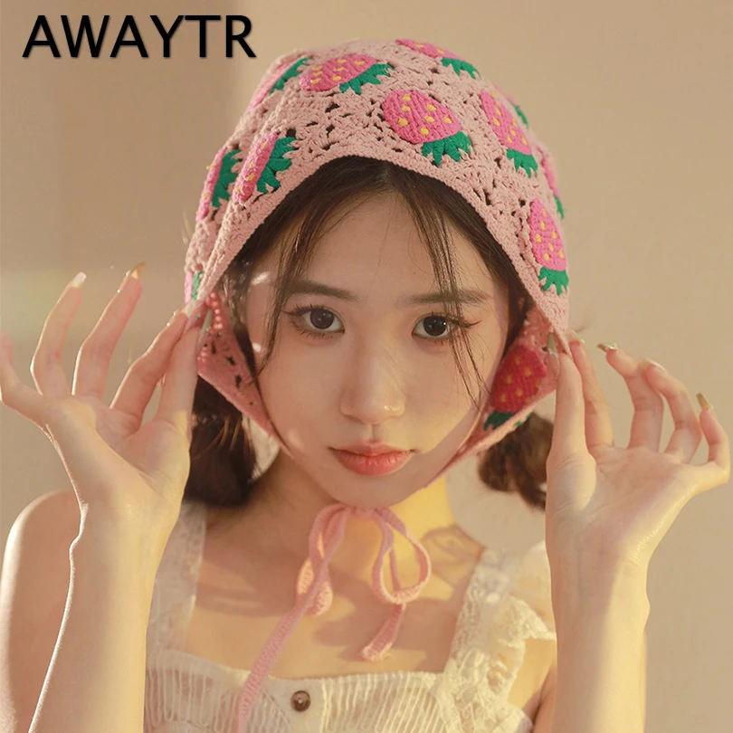 Awaytr koreanische Blume Erdbeere handgemachte häkeln hohle Dreieck Stirnband Handtuch sü&...