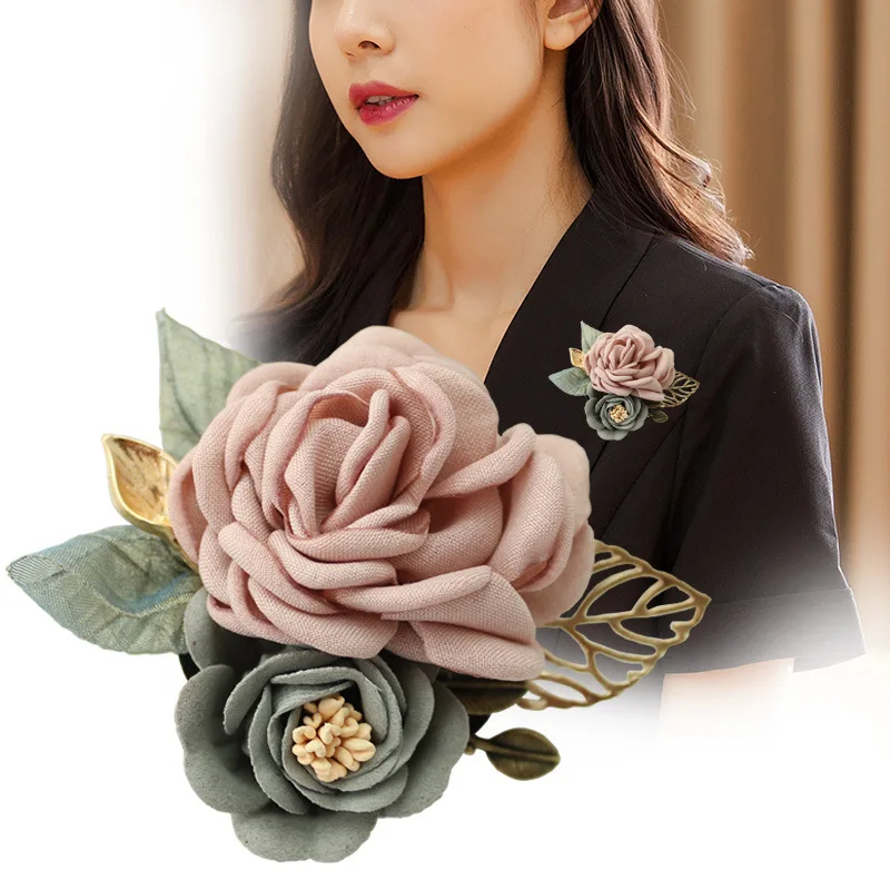 Koreanische Stoffblumenbrosche, elegante Brustblume, Haarspange mit doppeltem Verwendungszweck, Pull...