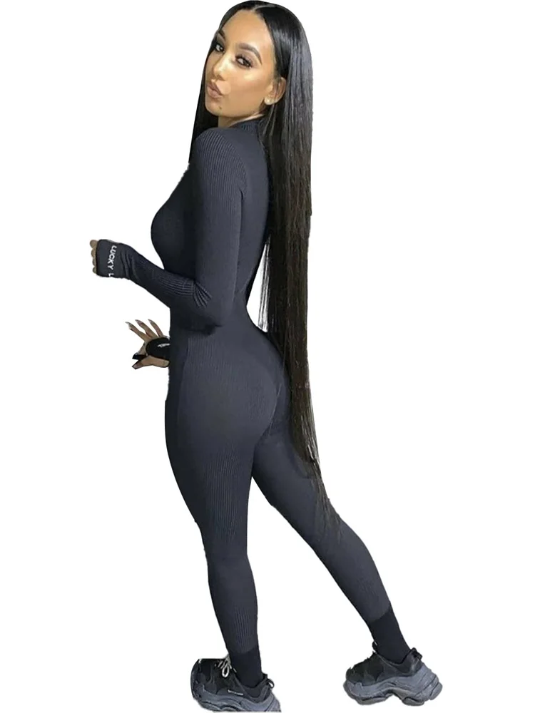 JRRY Lässige gerippte Damen-Overalls, Buchstabenärmel, Rollkragenpullover, Reißversc...