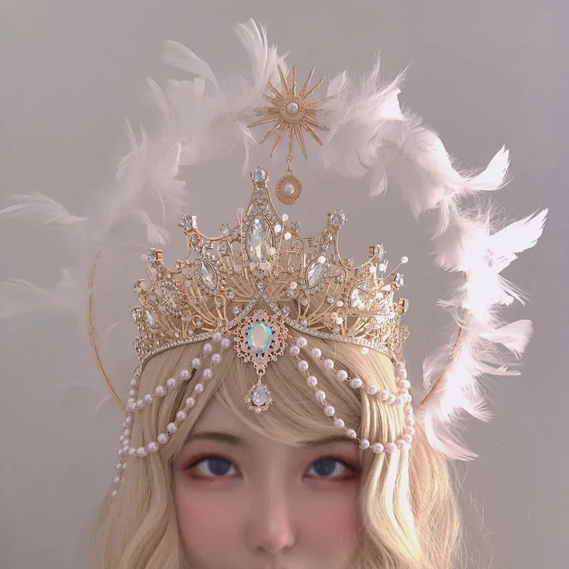 Handgemachte Halo Krone Kopfschmuck Lolita Göttin KC Gothic White Angel Feather Wings Halo Kris...
