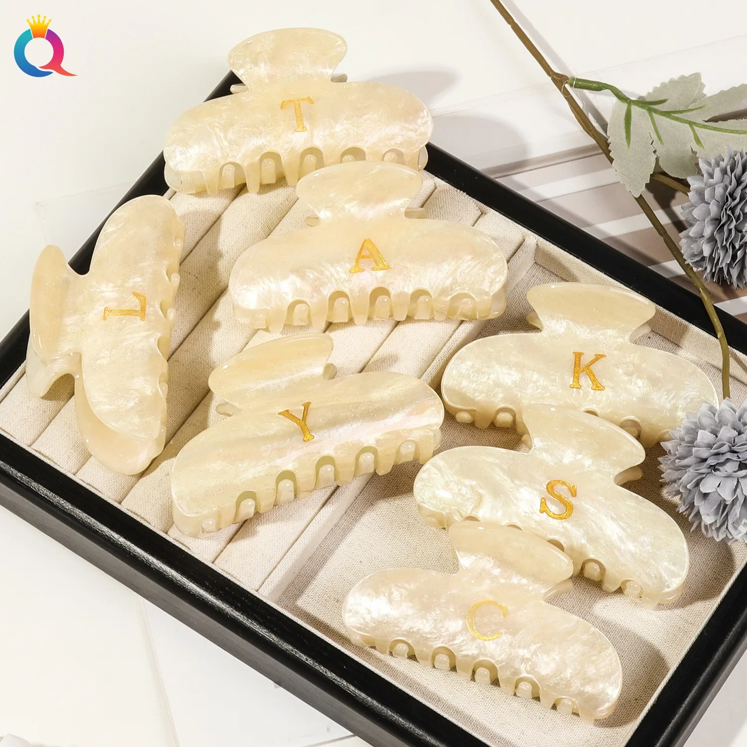QIYUE 8.5CM Acryl Letter Print Haars pangen Golden English Letter P...