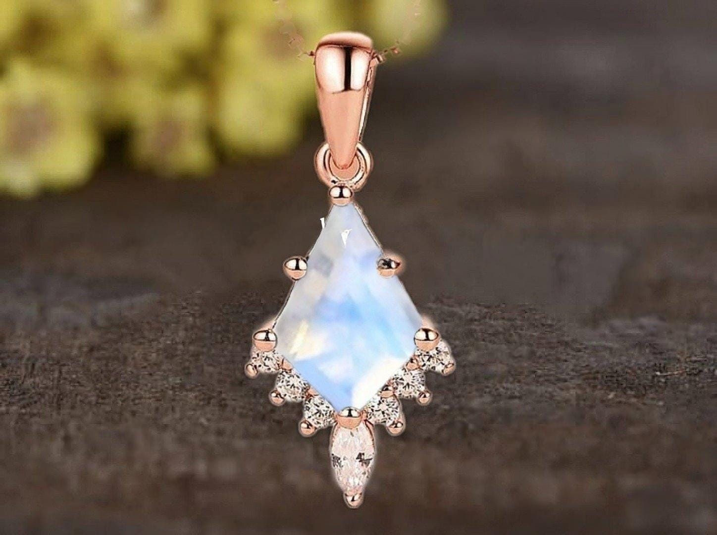 14k Rose Gold echte natürliche Mondstein Kite Cut Verlobung / ...