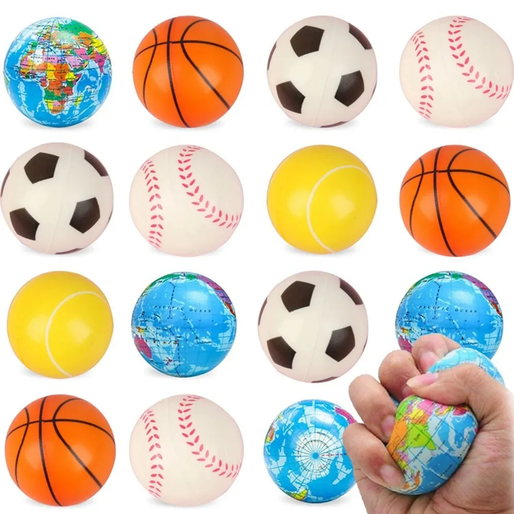6 cm Mini-Stressbälle, PU-Sportbälle für Kinder, Basketball, Baseball, Fußball,...