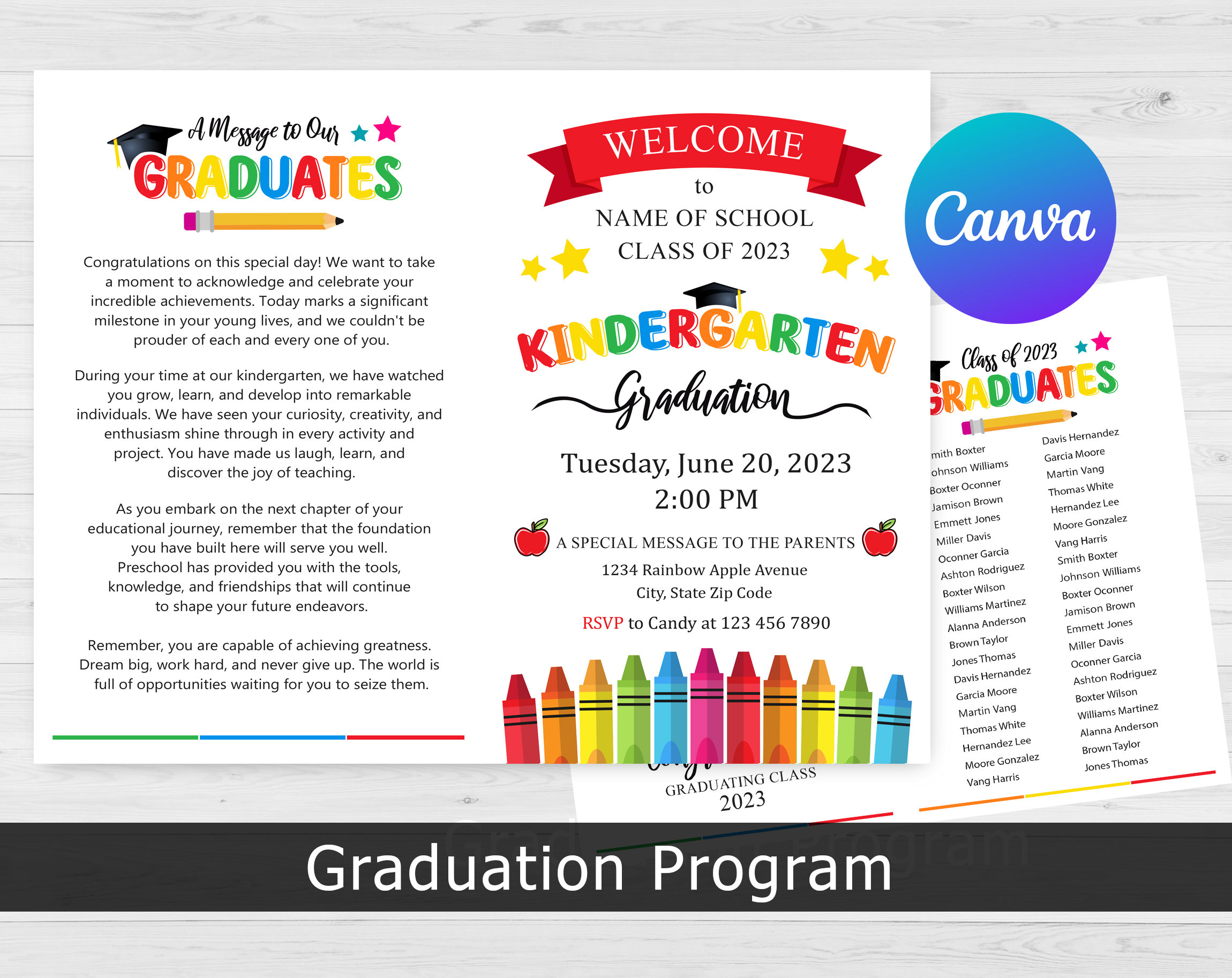 Kindergarten-Abschluss, bearbeitbares Kindergarten-Abschlussprogram...