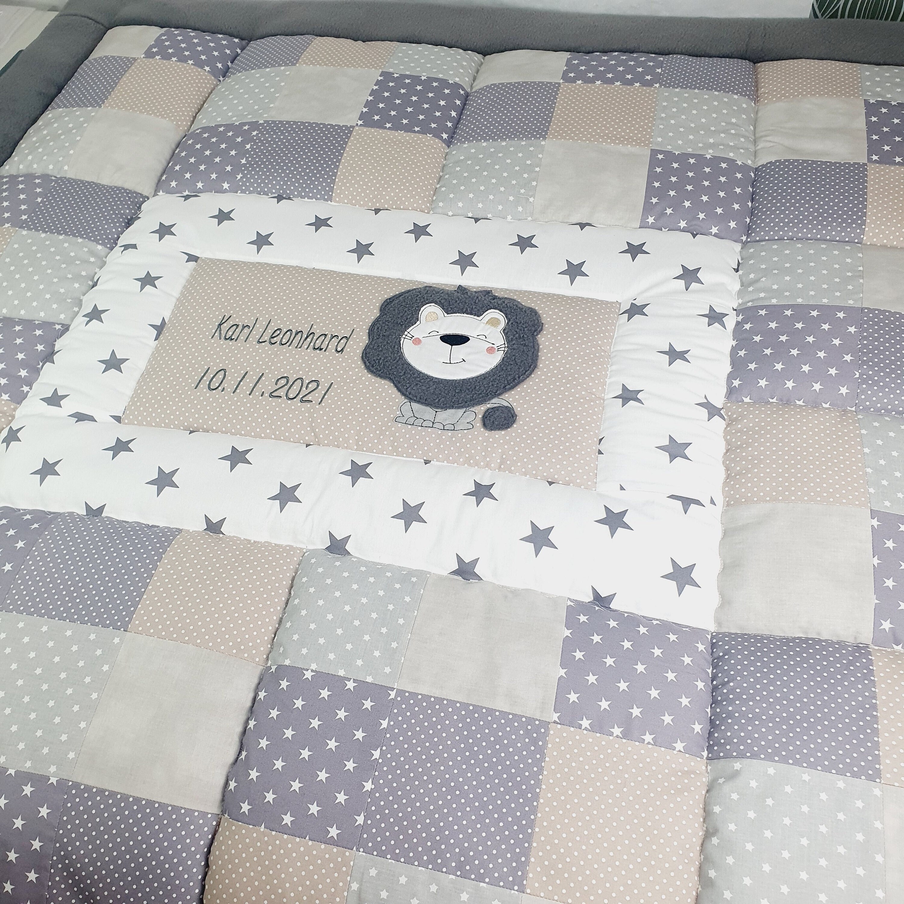 Krabbeldecke mit Namen * Löwe * Patchworkdecke personalisierba...