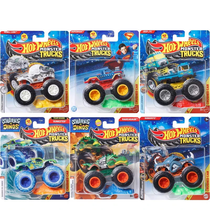 Echtes Hot Wheels Crushed Car Monster Trucks Jungenspielzeug Diecast Shark Dinos Jeep Superman Rebel...
