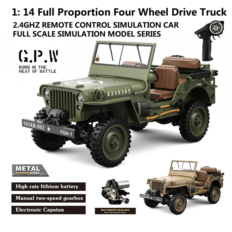 1/14 ferngesteuertes Auto, umwandelbares Off-Road-Kletterauto, Willys Militärfahrzeug, 4WD, ele...