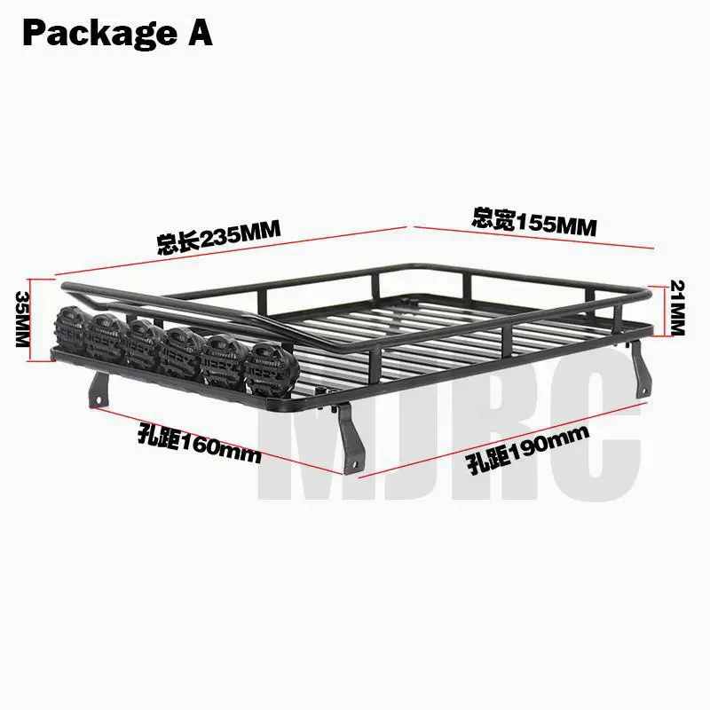 Kleines Dachgepäckträger aus Metall, LED-Licht für 1/10 RC Crawler für TRX4 Bron...