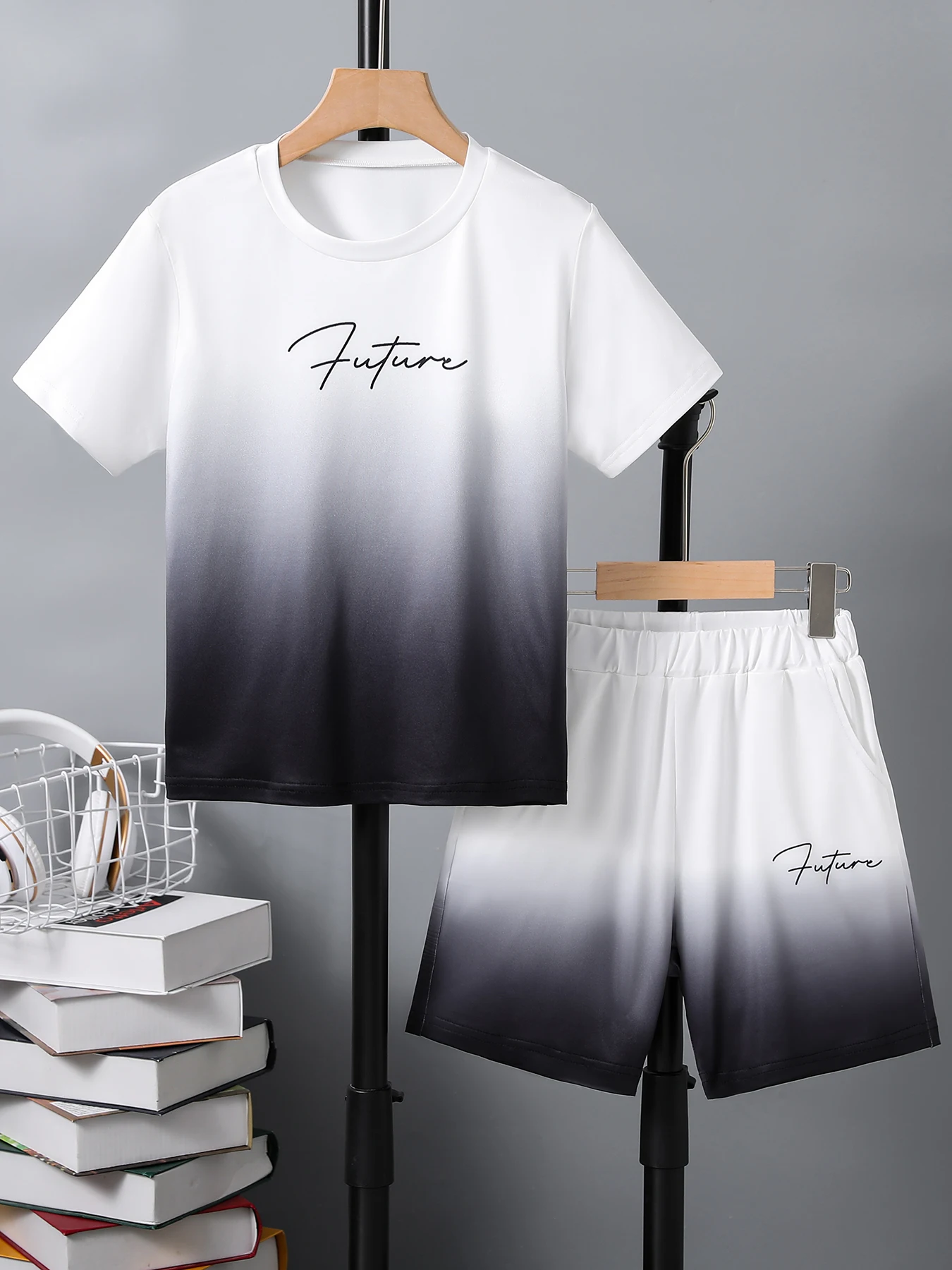 2er-Pack haut freundliche, atmungsaktive Rundhals-T-Shirts in Schwarz-Weiß-Farbverlauf fü...