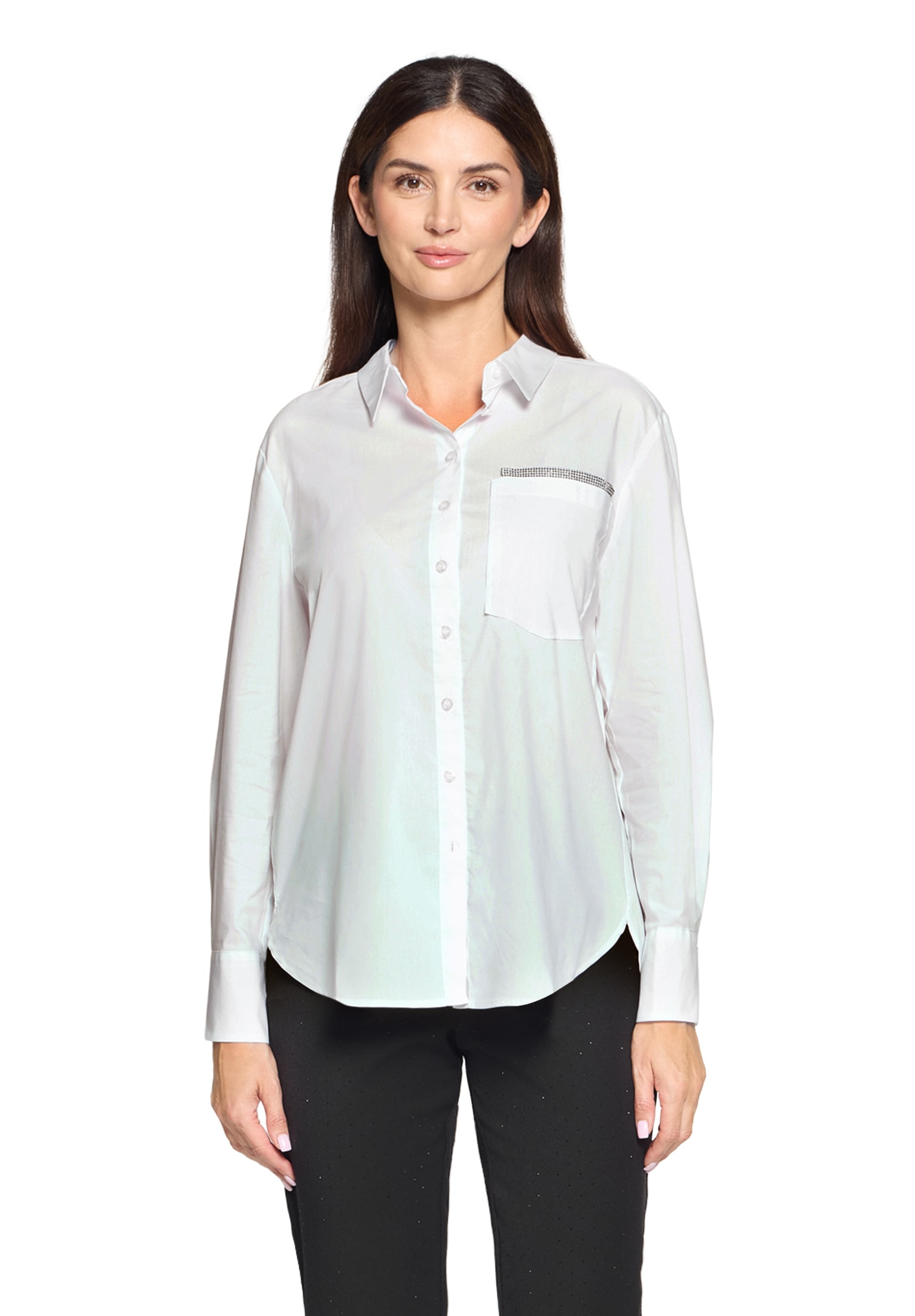 Diese moderne Longbluse besticht durch ihre gerade Form und eine klassische, durchgehende Knopfleist...