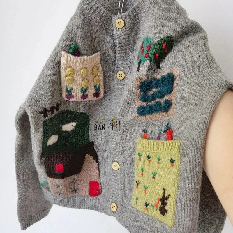 Kinder kleidung Mädchen Pullover Herbst 2023 Jungen und Mädchen Strick pullover bestickter...
