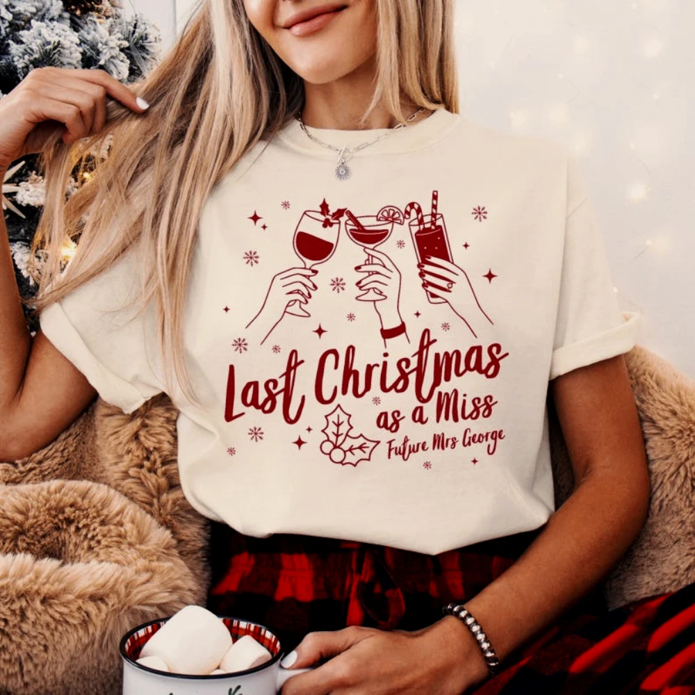 Benutzerdefiniertes Last Christmas As A Miss Shirt Neu verlobtes Geschenk für Frauen T-Shirt Pe...