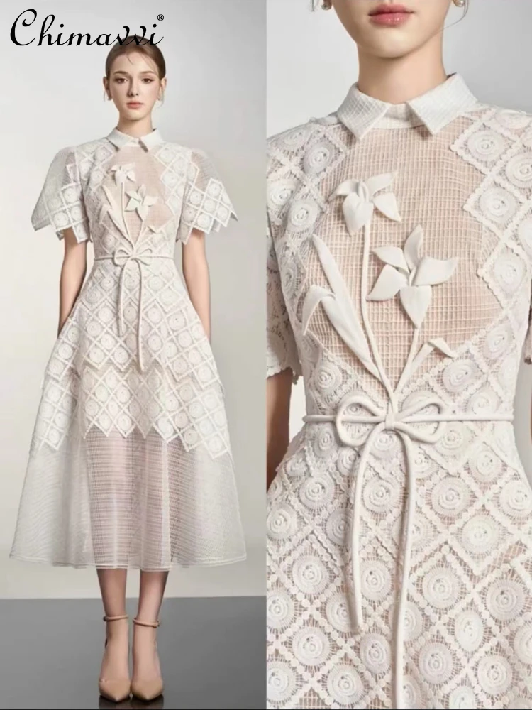 Frühling 2024 elegante Spitzens tickerei hohle 3d Blume Schnür kragen Kurzarm Kurzarm A-Li...