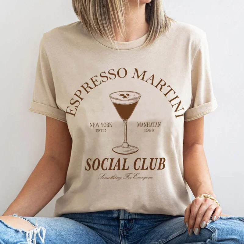 Vintage Alkohol trinken T-Shirt Espresso Martini Social Club Frauen T-Shirts niedlichen Cocktail Par...
