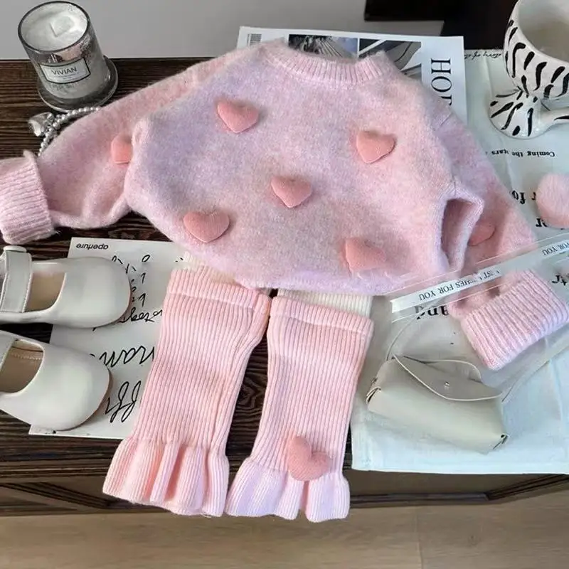 Mädchen Pullover Set Herbst Neue Stil Kinder Süße Liebe Gestrickte Top + Leggings 2-...