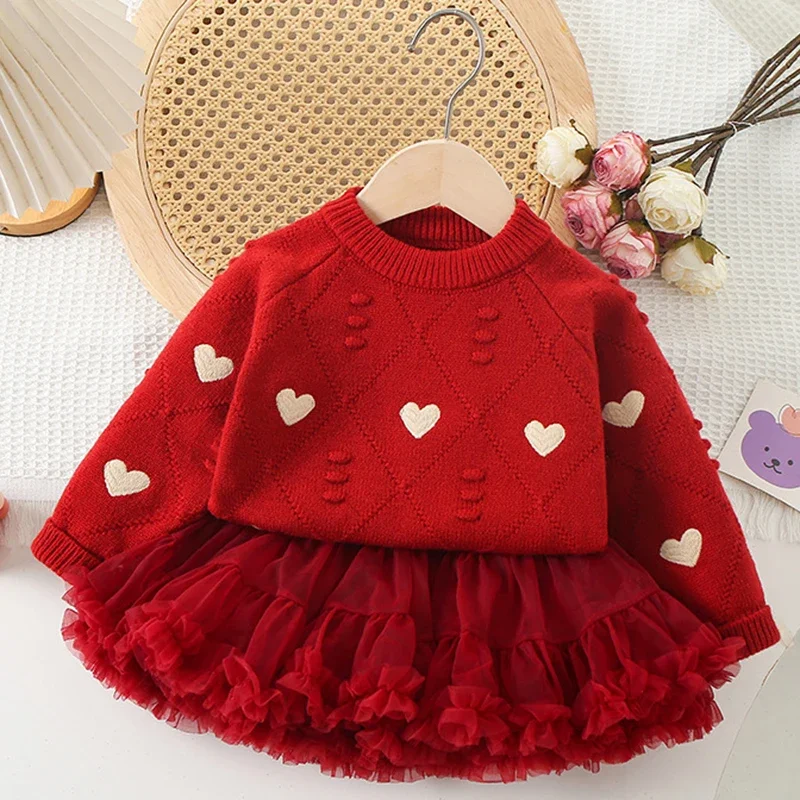 2025 New Autumn 2-6Yrs Children Clothes Set Baby Girl Knitted Clothes Suit Long Sleeved Knitted Card...