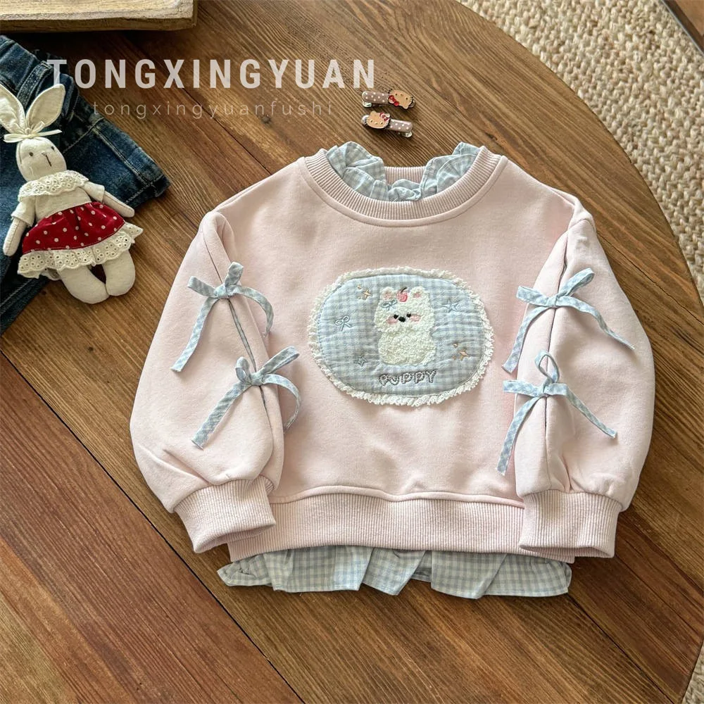 Girls' Hoodie Spring and Autumn 2025 New Item, Fake Two-piece Cloth...
