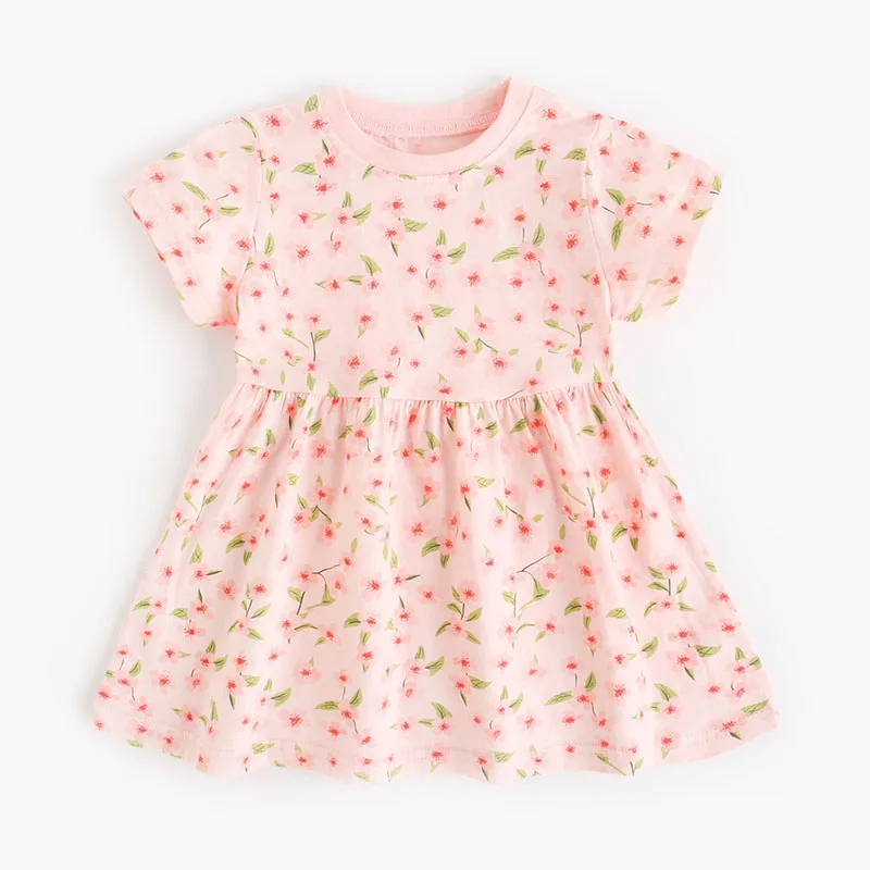 Summer Girls Dress 9M-5T Kids Cute Pink Flowers Clothes Children Baby Thin Short Sleeve Costume
