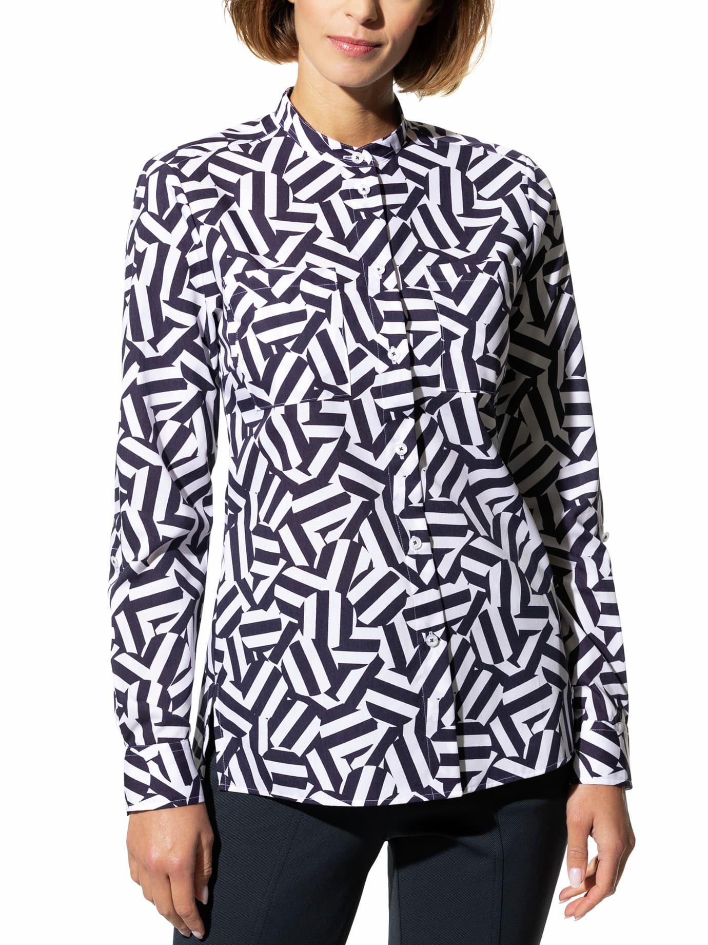 Walbusch Damen Bügelfrei-Bluse Stehkragen Blau bedruckt
