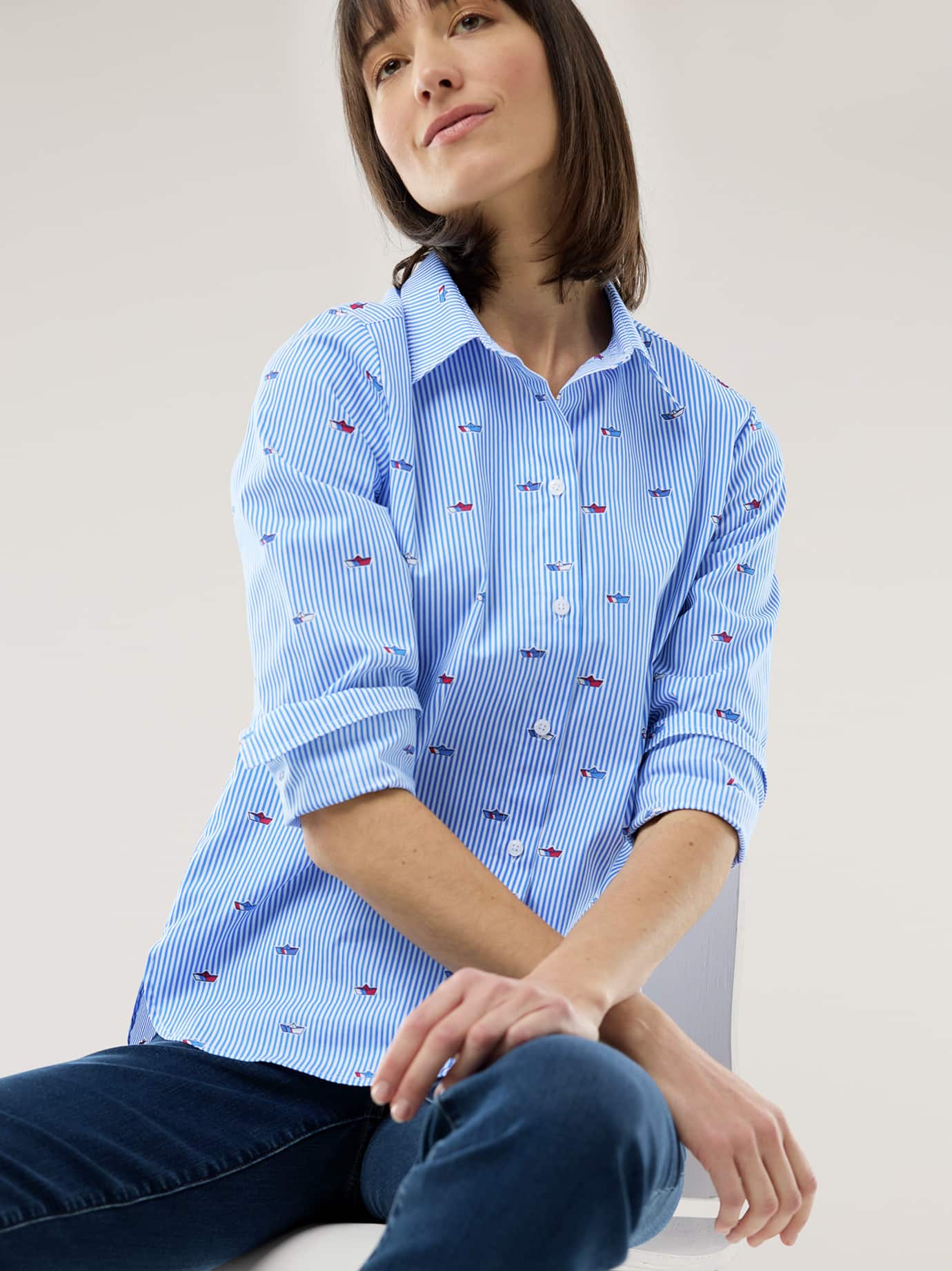 Auf den 1. Blick eine klassische, im besten Sinne zeitlose Streifenbluse. Wirkt immer frisch, lä...