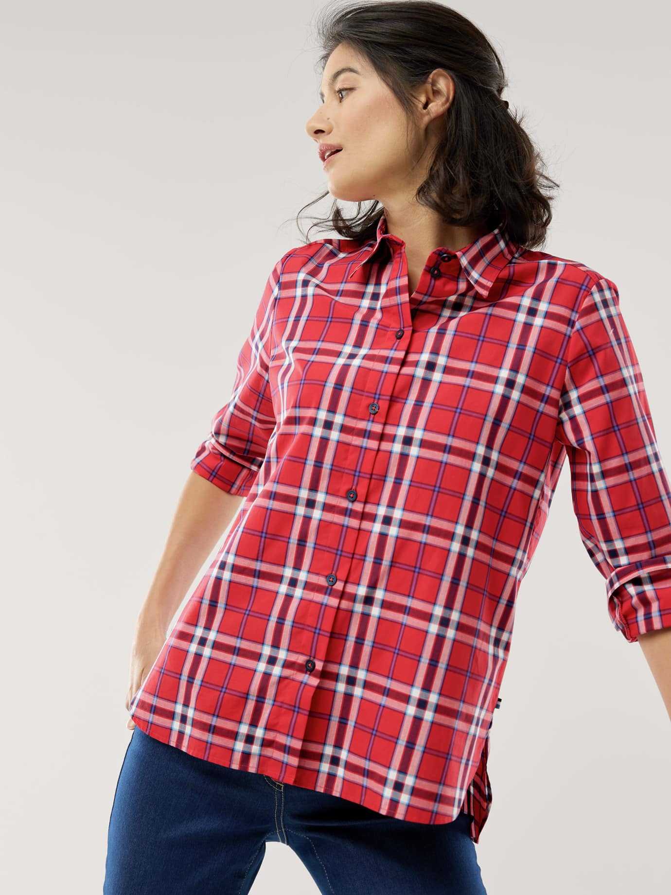 Walbusch Damen Baumwoll-Bluse Zeitlos Rot kariert