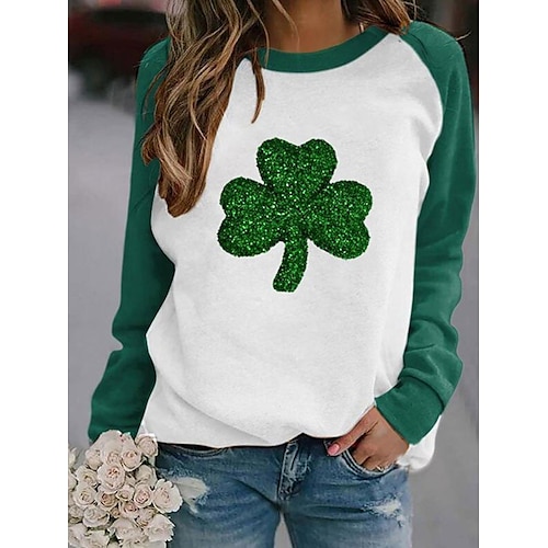 St. Patrick's Day Damen Kleeblatt Aktive Sportkleidung Langarm Rund...