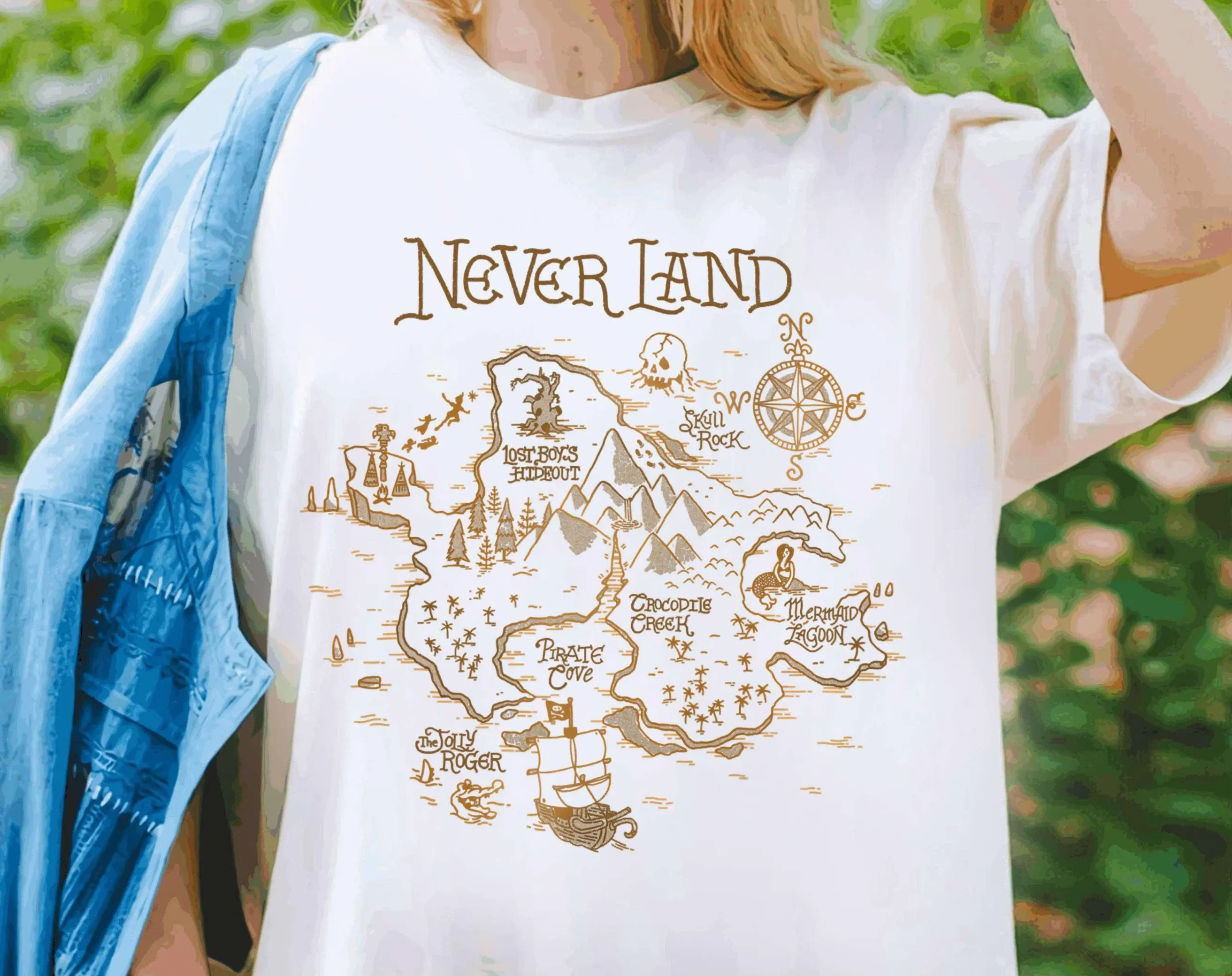 Disney Peter Pan Shirt Vintage Peter Pan Never Land Map T-Shirt Tin...
