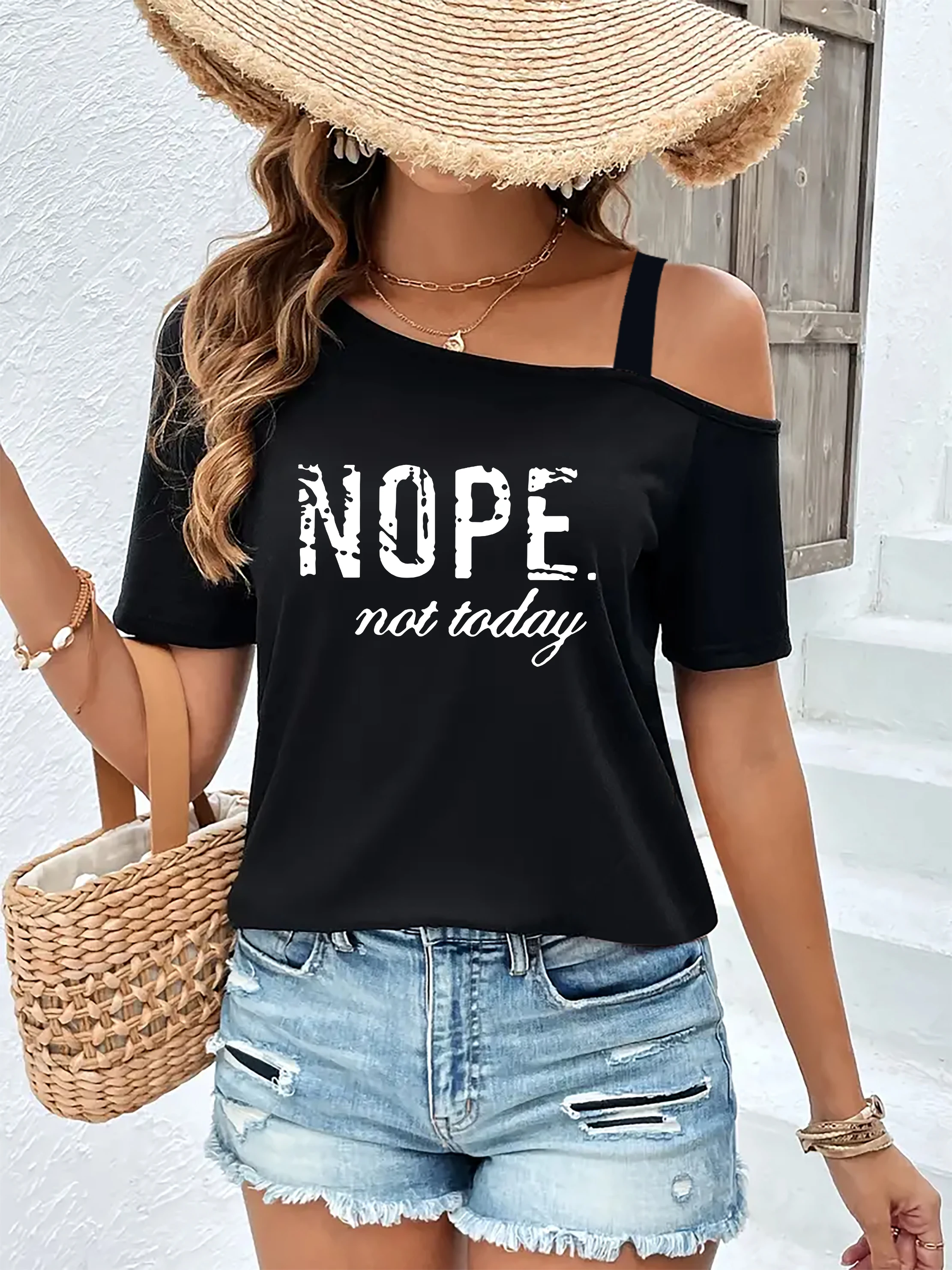 Alphabete drucken ein schulter freies T-Shirt mit Schräg hals ausschnitt, elegantes, kurzä...
