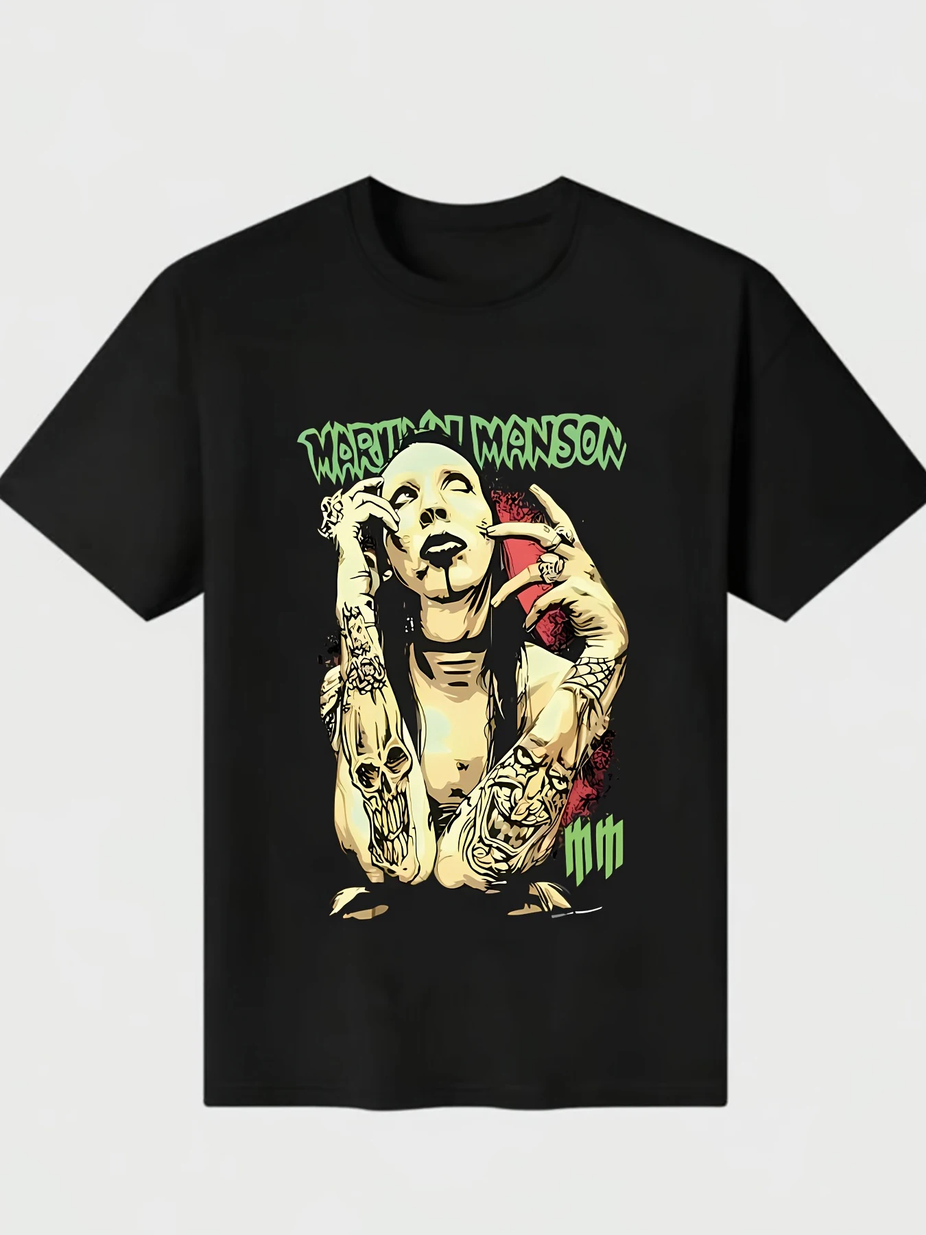Alphabet Art Tattoo Design Street Baggy Baumwolle T-Shirt Rock Band Industrial Metal Gothic Thriller...