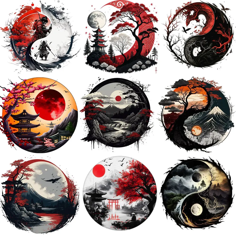 Yin Yang Tai Chi Sonne Mond Wärmeübertragung Vinyl Design T-Shirts DIY Sechs Landschaft Ko...