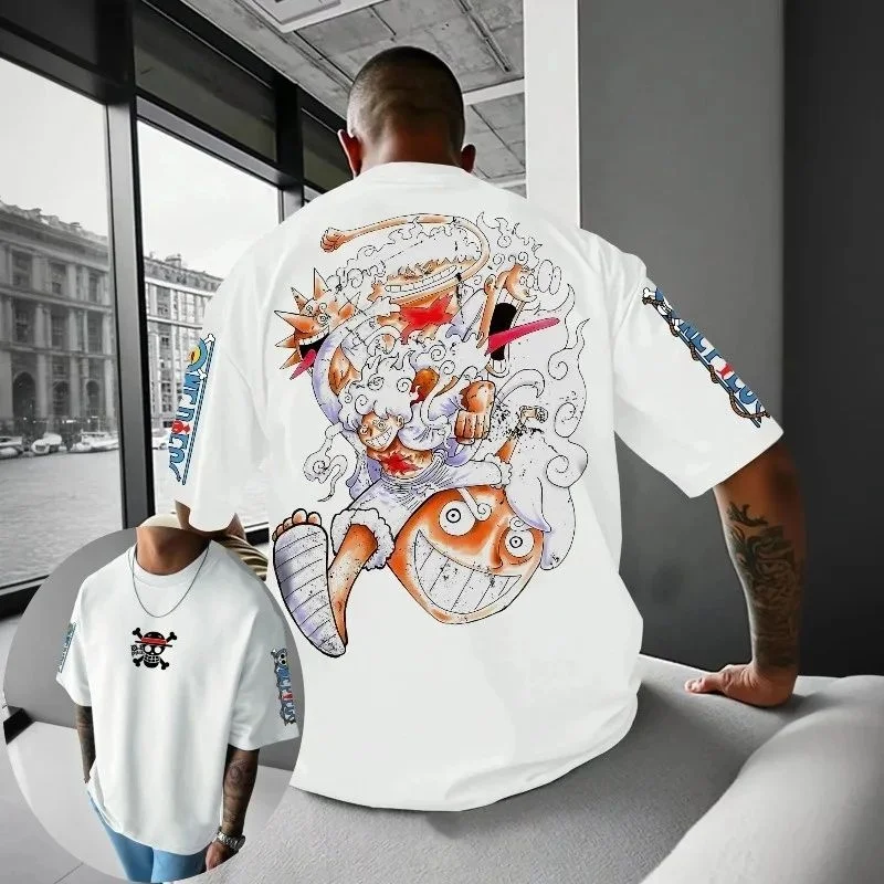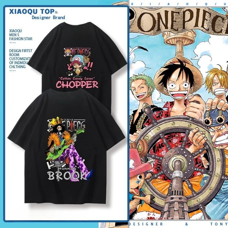 One Piece Ruffy ONE PIECE Anime Persönlichkeit Druck Lose Baumwolle Schulter T-Shirt Kurzarm