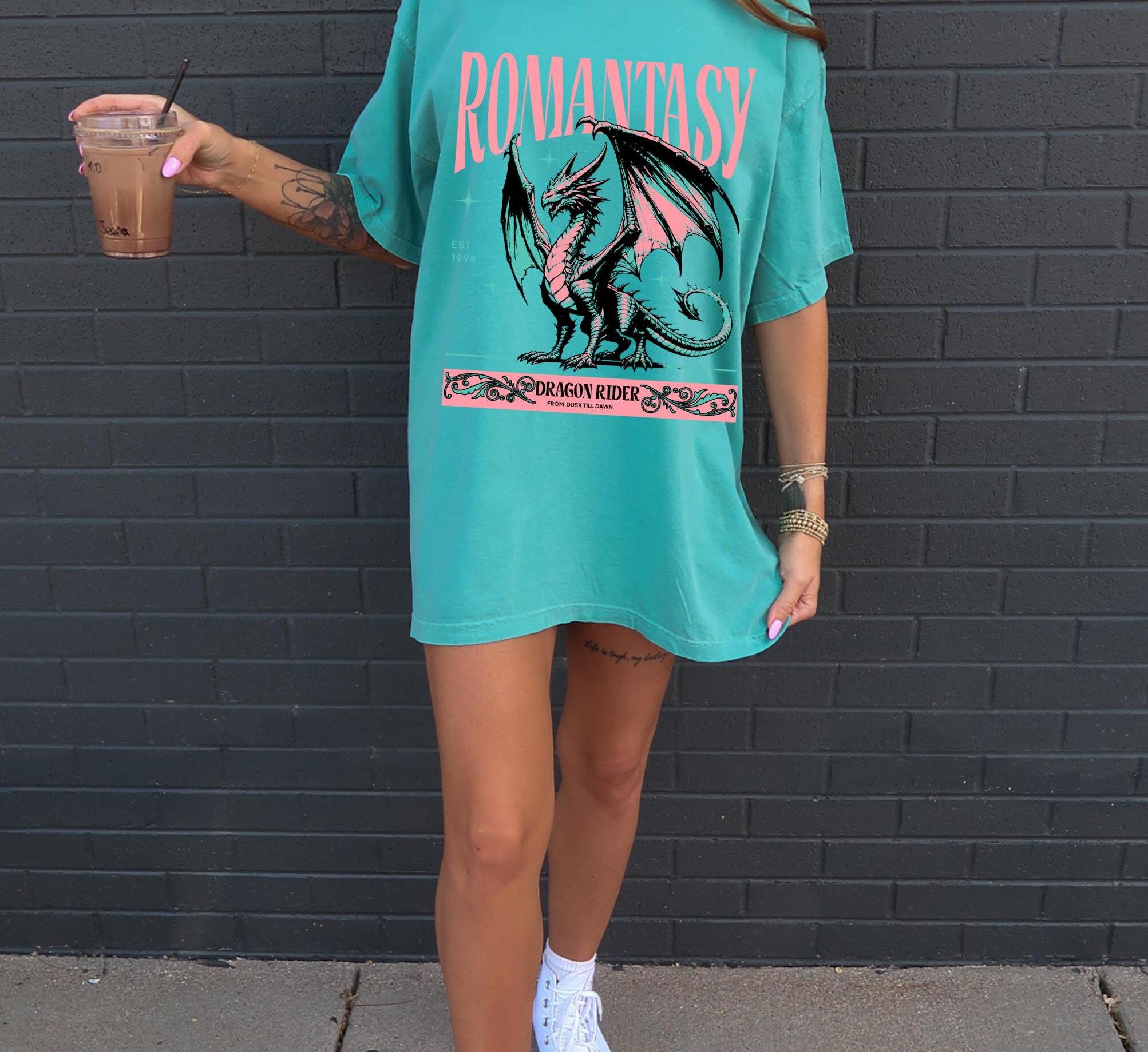 "Welcher Romantasy-Leser liebt keine Drachen?! Dieses Stückgefärbte T-Shirt \"\&...