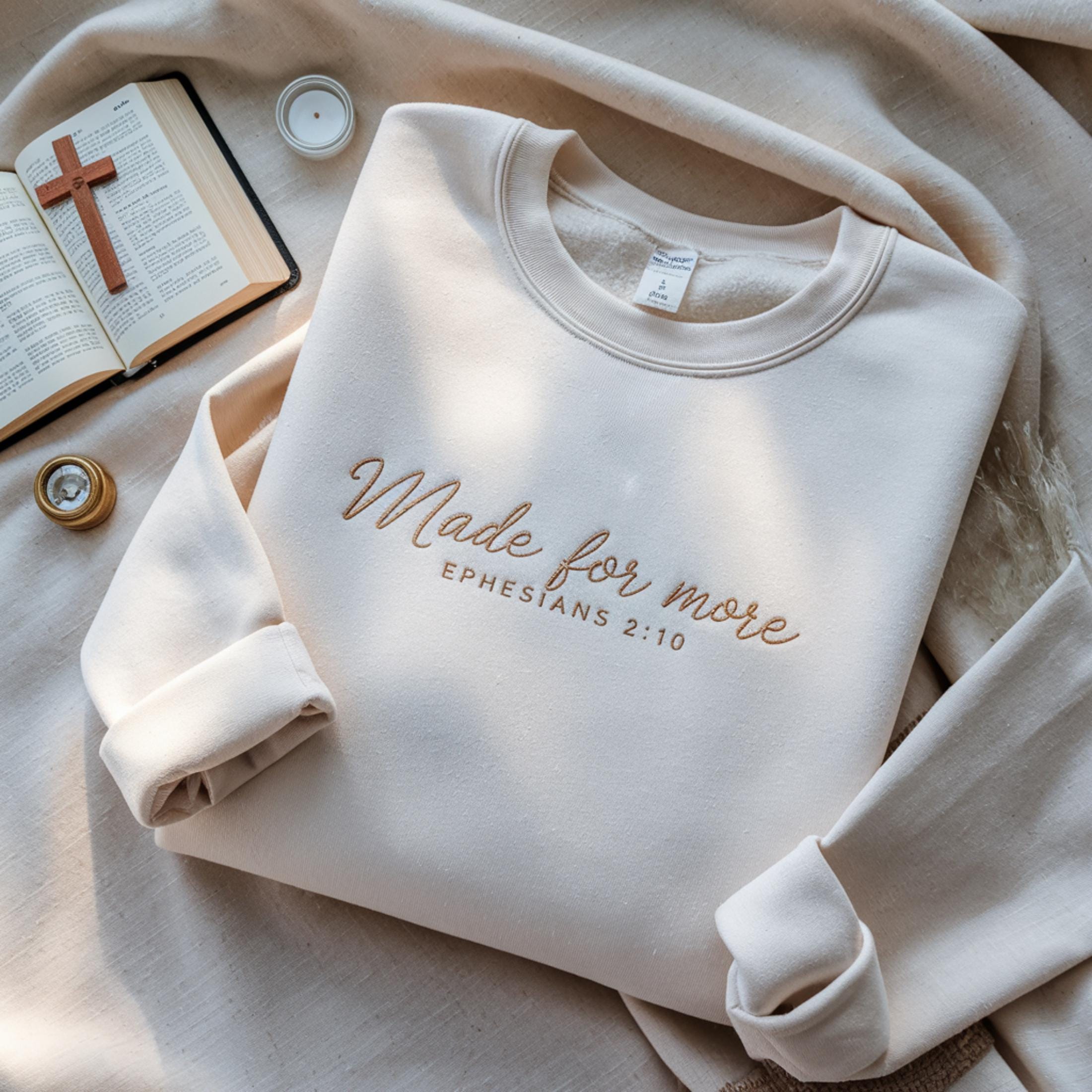 "Christliches Sweatshirt - \"Made for More\" bestickter Rundhalsausschnitt, Bibel Ver...