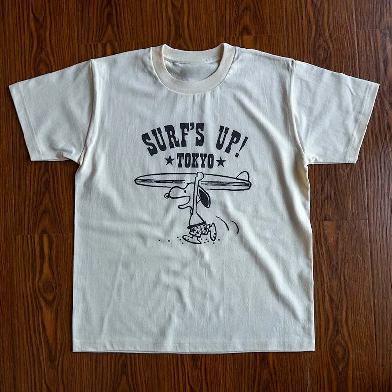 Snoopy Surfing Tokyo Surfs Up Tokyo Japanischer Retro-Cartoon, lockeres Amikaji-Kurzarm-Mode, Stra&s...
