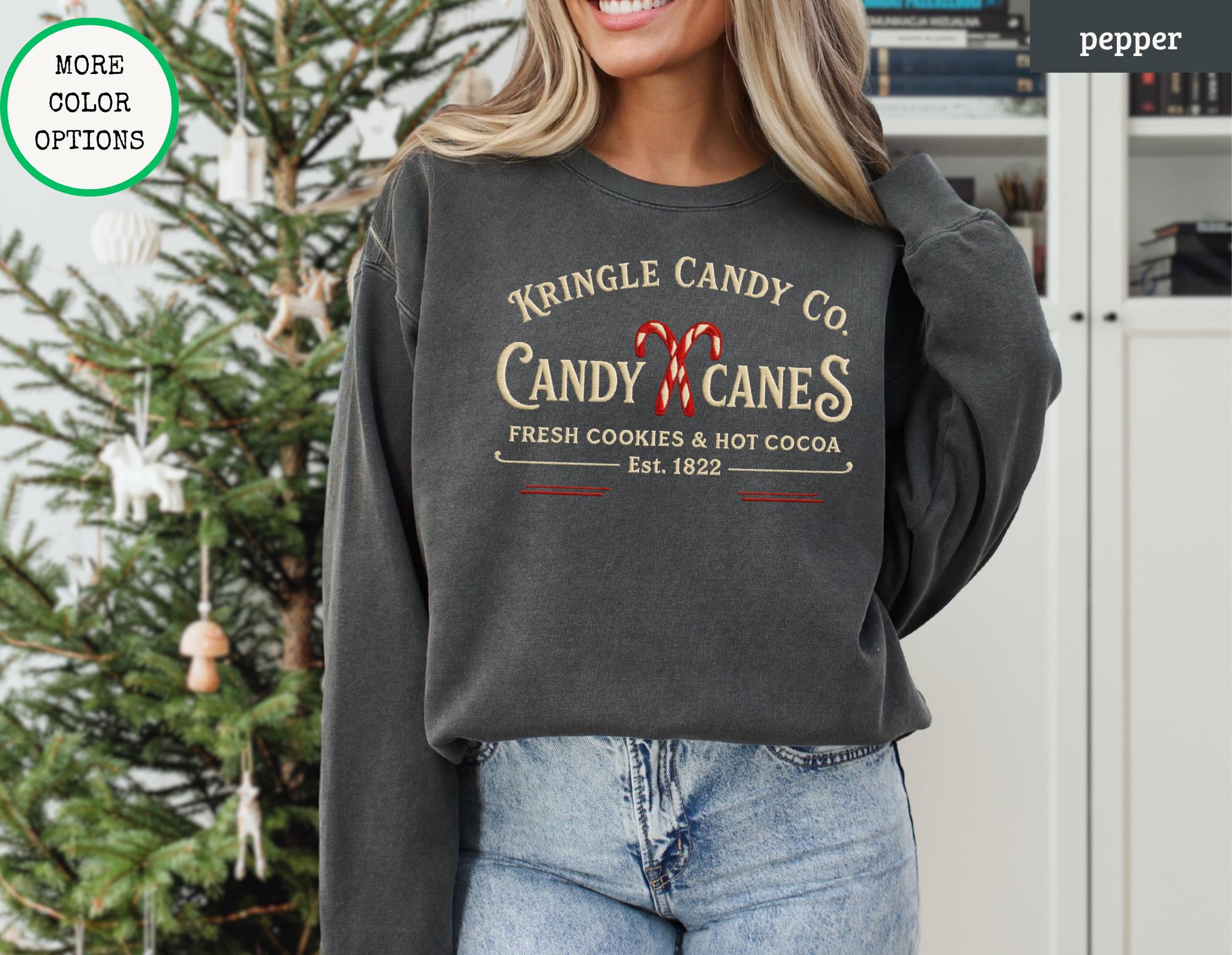 "Kringle Candy Co besticktes Sweatshirt, Candy Cane T-Shirt, Candy Lover Pullover, Weihnachtss&...