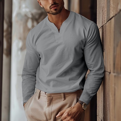 Herren T Shirt Langarmshirt Langarm V Ausschnitt Frühling Herb...