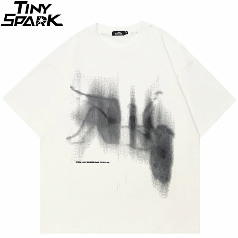Männer T-Shirt Streetwear Verloren Schatten Grafik Casual Beige Weiß T-shirt Tops T Baumw...