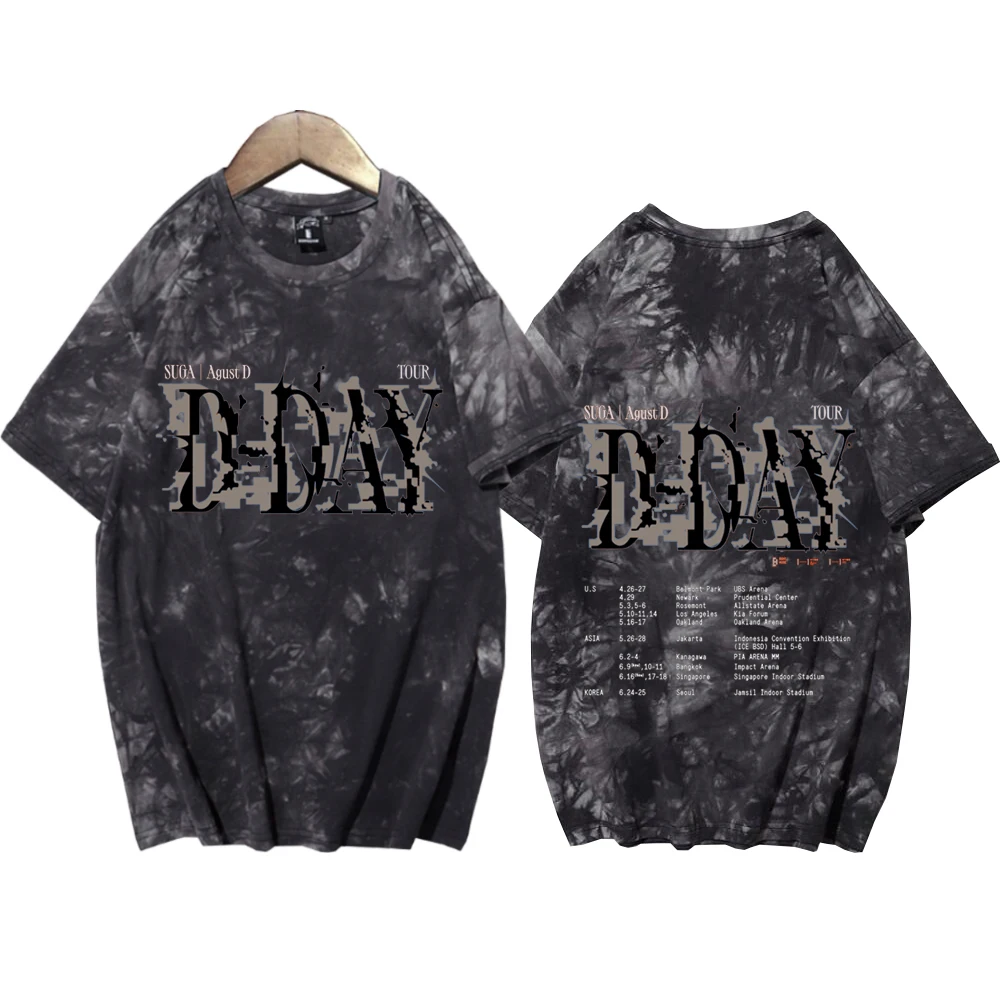 Suga Agust D Tour Tie Dye Shirts Unisex Rundhals Kurzarm Beliebte Musik T-Shirt Fans Geschenk