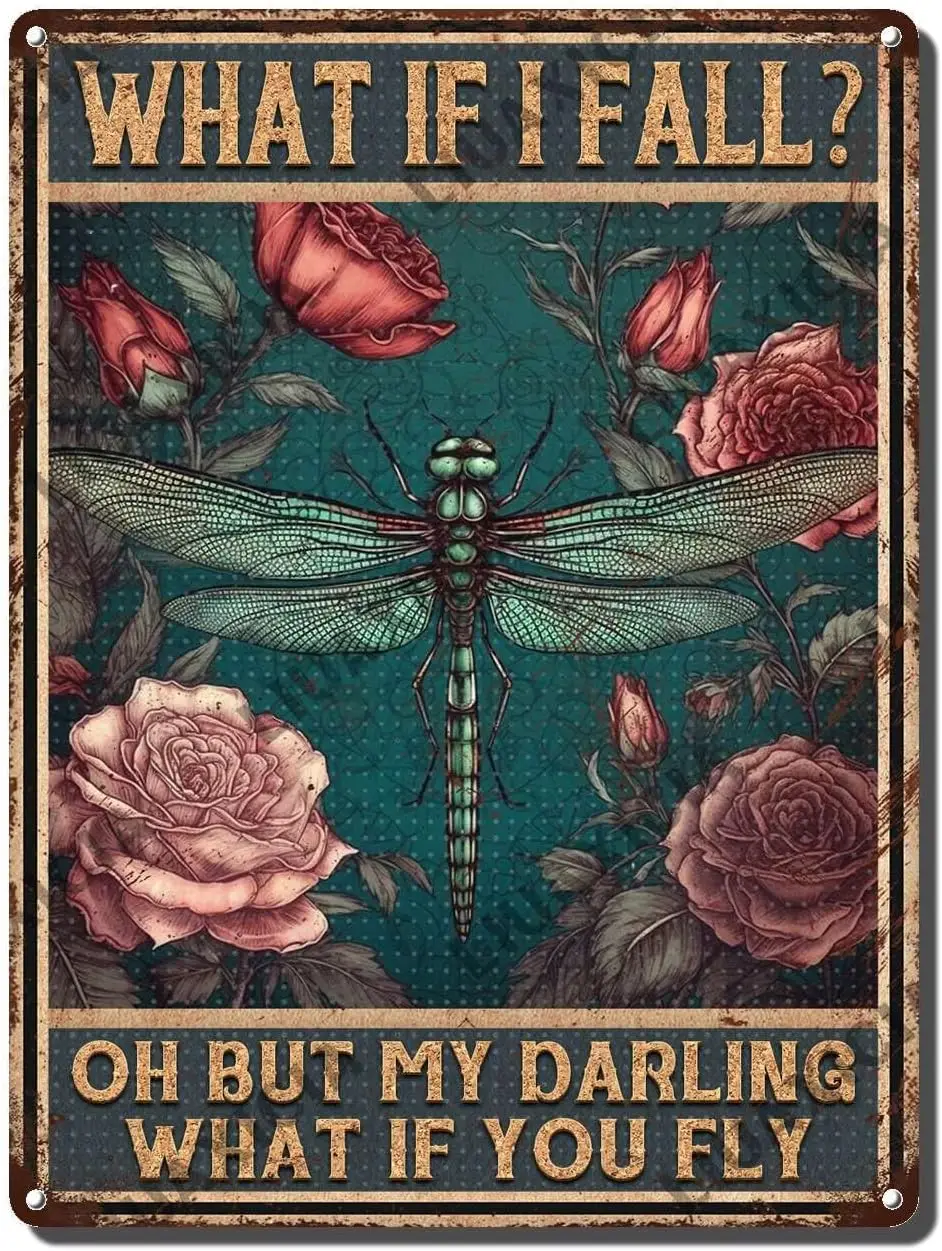 Y1, Vintage Metallblechschilder Retro What If I Fall Oh But My Darling You Fly Libelle Schild Nostal...