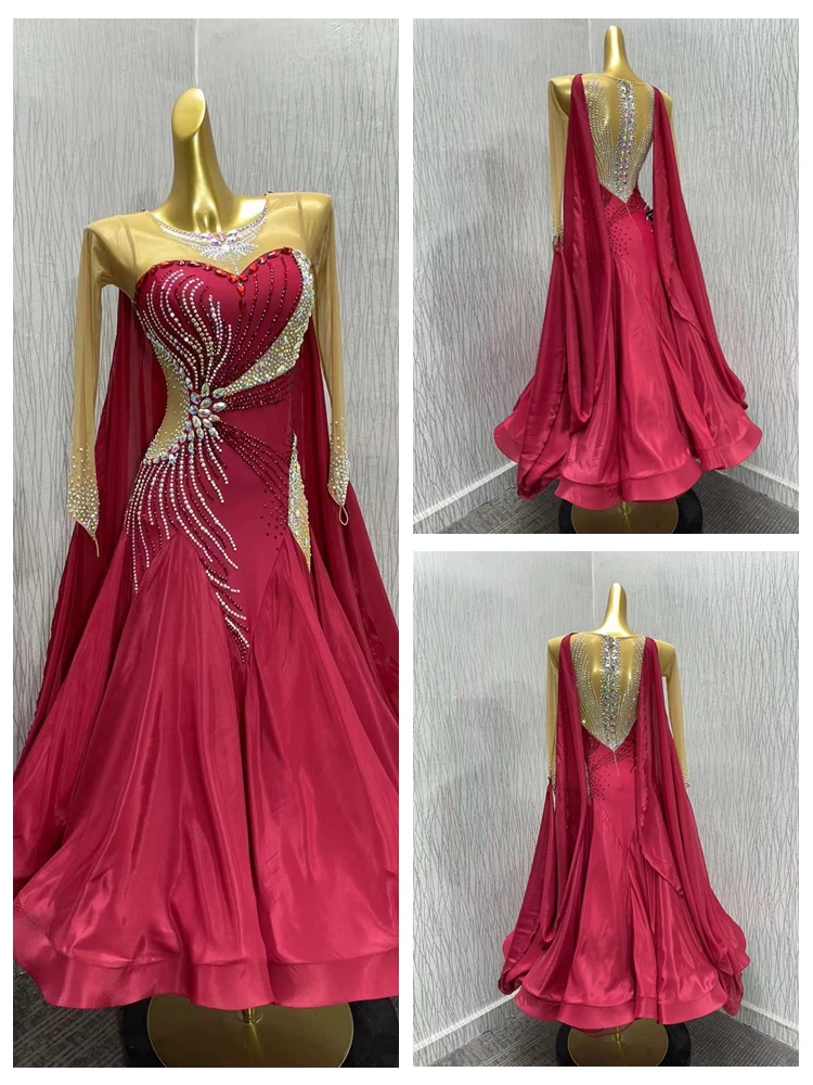 GOODANPAR Angepasst ballroom dance kleid wein farbe Standard Tanz Kleid ballsaal kleid für Wett...