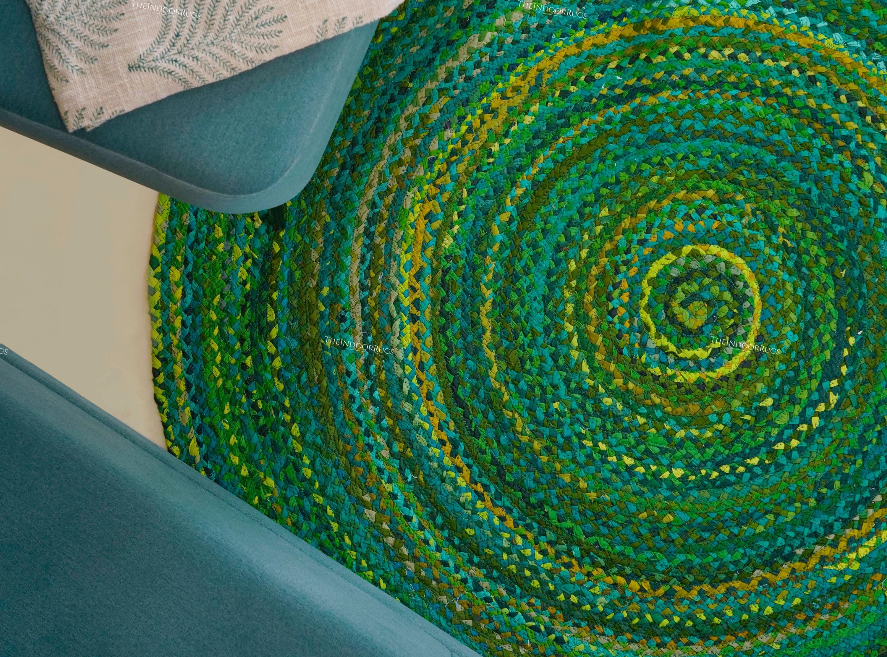 Multicolor cotton braided round jute rugs : Bed side decor circle c...