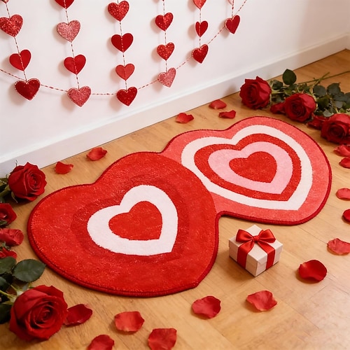 Valentinstag-Fußmatte in Herzform, Badezimmerteppich, rot-ros...