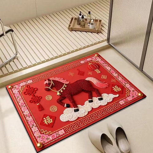 Rote Badematte zum chinesischen Neujahr, Jahr des Pferdes, weiche K...