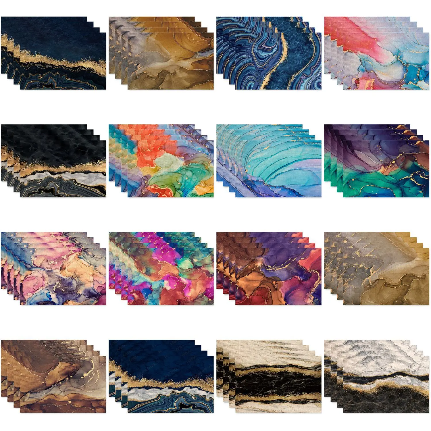 4-teiliges Tischset mit Aquarell-Marmor-Motiv, Leinen-Tischset, Tischset im westlichen Stil, Antifou...