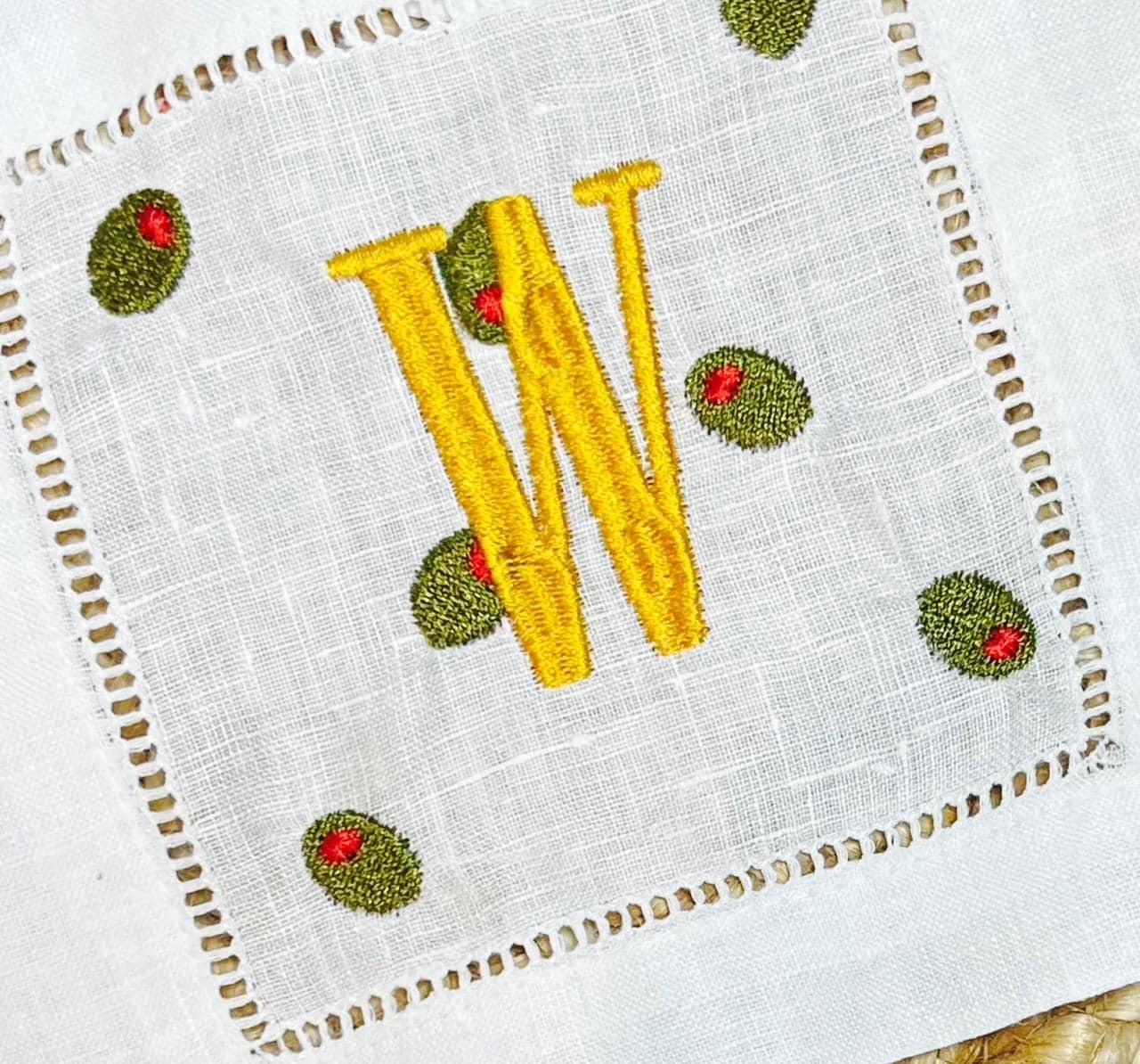 Gestickte Olive Cocktail-Servietten, Martini-Cocktail-Servietten, P...