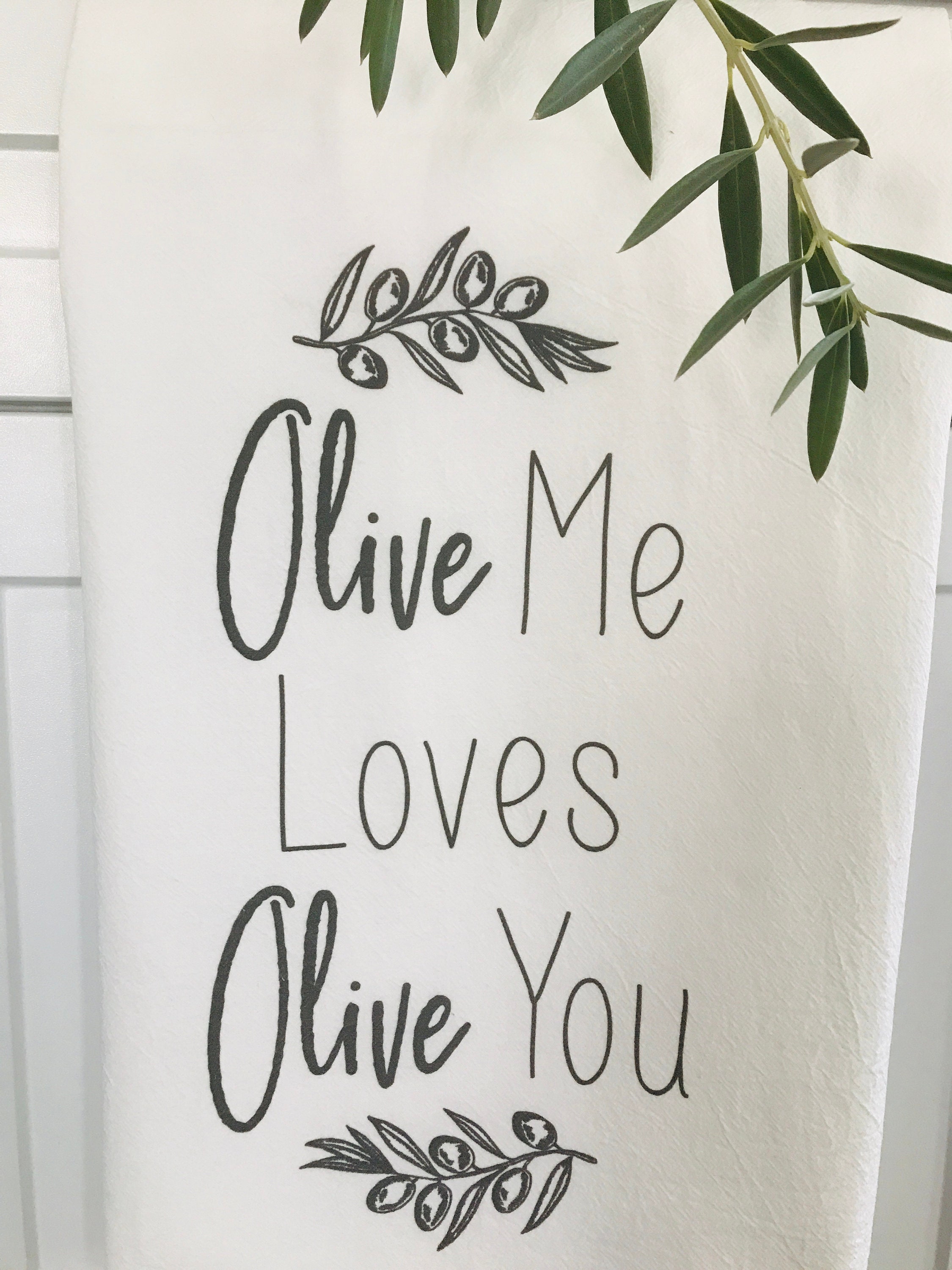 Olive me liebt Olive du! Unser griechisch inspiriertes Geschirrtuch verleiht deiner Küche den p...