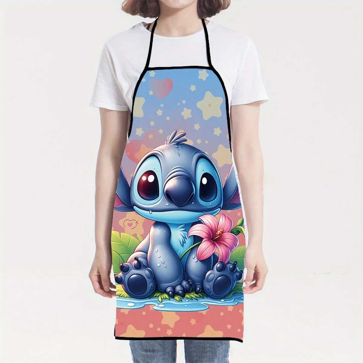 1-teilige bestickte und sternbedruckte Schürze – lebendige blaue Stickerei mit rosa Blume...
