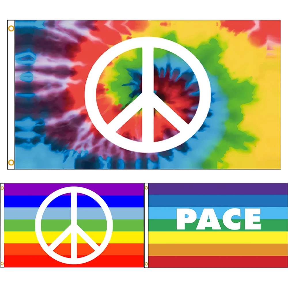 FLAGDOM 3X5Fts 90X150cm Flagge des Friedens Zeichen Tie Dye ösen Fliegen Banner Für dekora...
