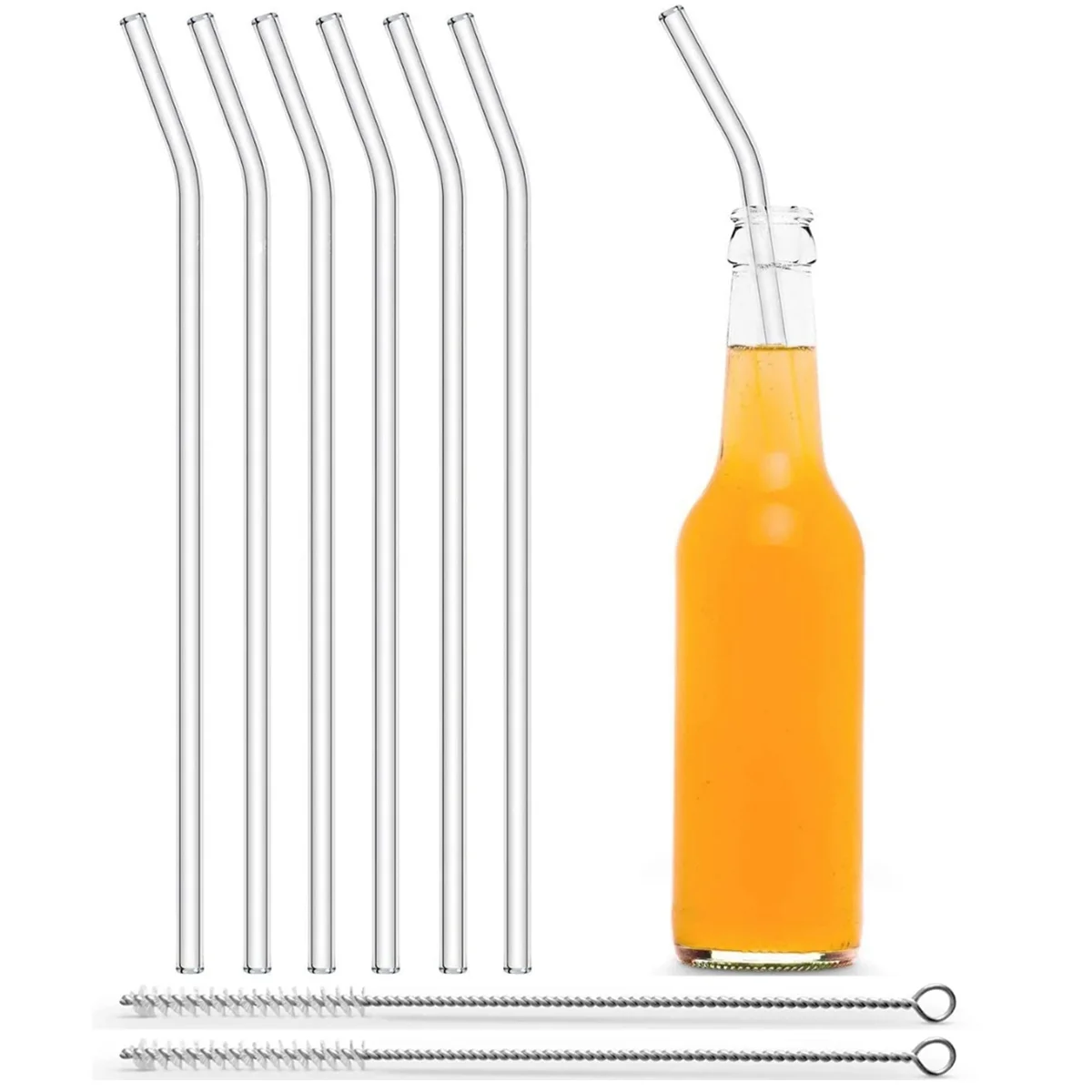 6 Stück 8 mm x 250 mm Glas-Trinkhalme, lange wiederverwendbare...